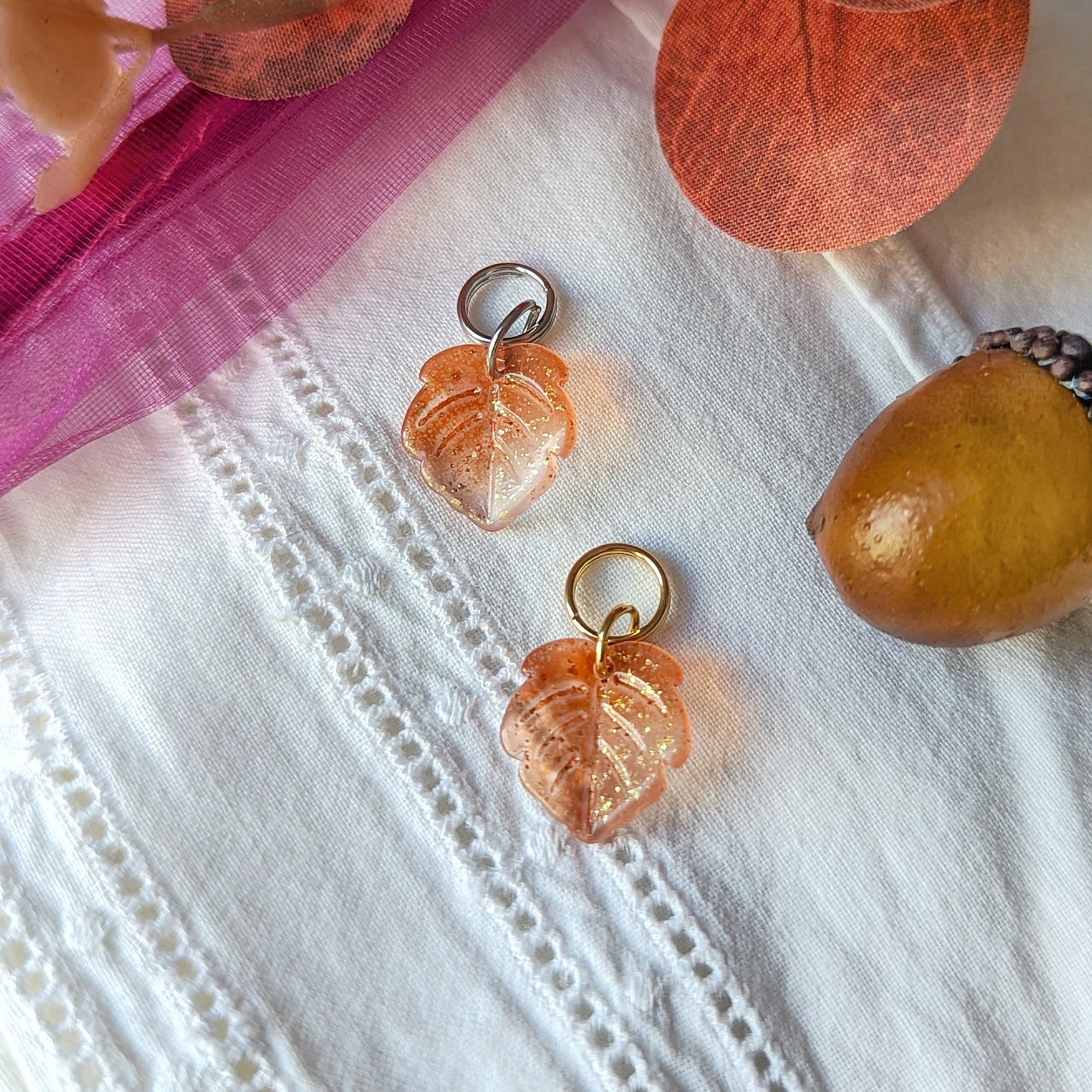 Bling Feuille d’Automne en Verre en acier inoxydable et verre, 2,5 cm x 1,4 cm, accessoire, pendentif, charm interchangeable sans outils pour bijoux en acier inoxydable Bling Tonic.