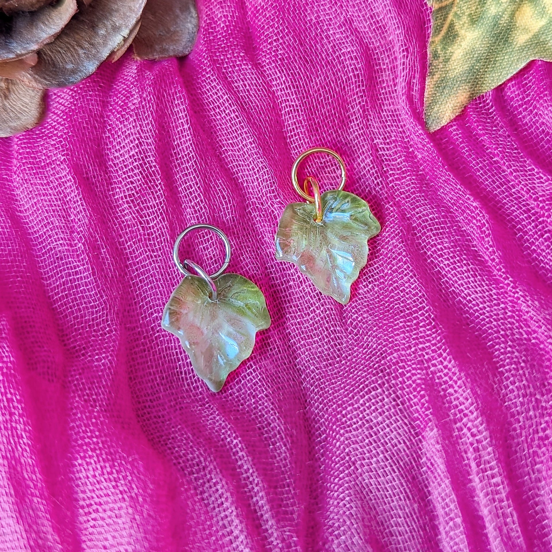 Bling Feuille de Lierre en Verre en acier inoxydable et verre, 2,5 cm x 1,5 cm, accessoire, pendentif, charm interchangeable sans outils pour bijoux en acier inoxydable Bling Tonic.